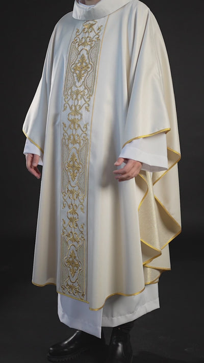 Ornát je vyrobený z vysoko kvalitných látok, čo zabezpečuje komfort počas kňazskej služby. Liturgické rúcho na Vianoce má vyšívaný pás a najčastejšie v sade štólu. Môžete si užívať zdobené liturgické rúcho s eucharistickou výšivkou alebo vyšívaným pásom z príjemného na dotyk materiálu. Aby sme vyhoveli potrebám najnáročnejších zákazníkov, ornáty sú vyrobené s najvyššou starostlivosťou a tiež podľa individuálnych objednávok.