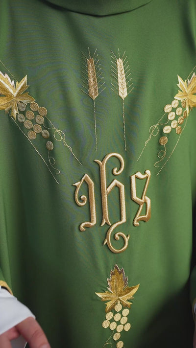 Ornat haftowany z symbolem IHS winogrona Zielony