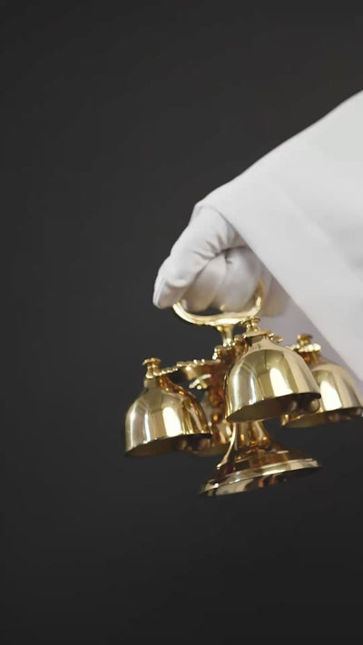 Tieto výnimočné štvorité zvony, vyrobené z mosadzného odliatku a dokončené v zlatej farbe, sú elegantnou ozdobou, ktorá prináša do sakrálneho priestoru atmosféru svätosti a pokoja. Každý zvon je starostlivo leštený, čo spôsobuje, že jeho povrch krásne odráža svetlo a vnáša do miestnosti jemný lesk.