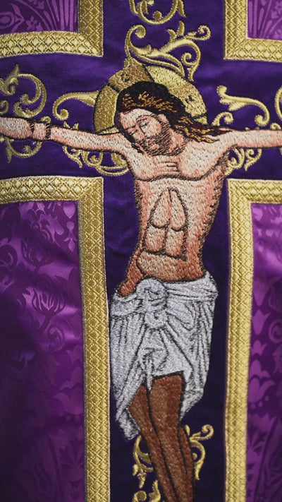 Fioletowy ornat haftowany z wzorem Jezusa Chrystusa