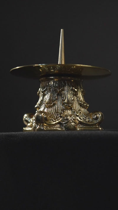 Mosadzný, nízky svietnik umožní správne vystaviť oltárne sviece. Mosadzný svietnik s jemnou výzdobou je neoddeliteľnou súčasťou vybavenia kostolov a farností.